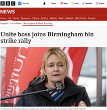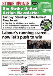 We believe that the whole trade union movement is behind the Birmingham bin workers, striking back against £8,000 a year pay cuts. We also think the vast majority of Labour party members are on their side. Trade union branches can send messages of solidarity and can donate to the strike fund. Loads of trade union branches doing this helps strengthen the resolve of our members and isolates the council leadership and the government commissioners.