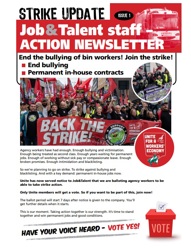 Unite Action Newsletter #7 | Vote YES in the ballotYou will soon be receiving a ballot paper in the post. It is vital that you take part and VOTE YES. We need to re–ballot to continue to make sure that you are legally protected. Both BCC and agency members will be reballoted. We are fighting hard for all members: permanent and agencv, we are all together. Download Unite Action Newsletter #7