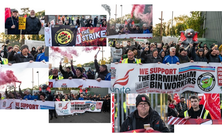 On top of the nearly 6,000 households in Birmingham that are displaying posters or bin stickers in support of striking refuse workers, now more than 150 businesses, plus faith groups and community groups have also pledged support to Unite’s campaign calling for the council to enter new talks.