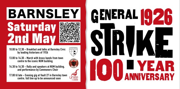 Don't forget to sign up for the gig | Following the march and rally, celebrate the 100th anniversary of the General Strike at Unite’s gig at Vault 27, Barnsley. A stacked bill of raucous political bands and artists playing from 17:00 including: Ferocious Dog (acoustic set), The Wakes, The Primevals, and Katrina Tia Charles. Full set times will be added closer to the date. All funds donated to Unite's strike fund to support workers in industrial dispute today. Buy tickets for the gig here - all funds go to support workers in dispute.