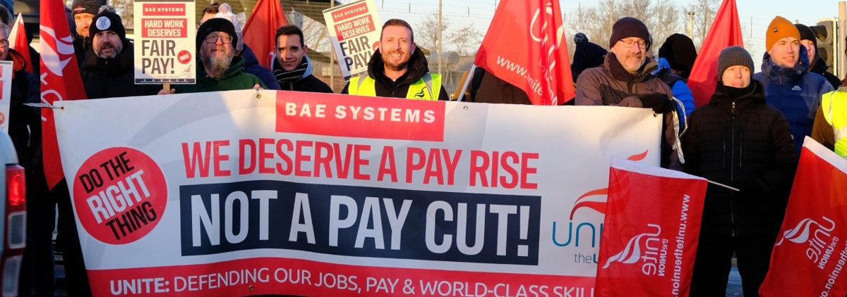 Unite, the UK's leading trade union for defence and aerospace, is appalled at the latest obscene profits for military-industrial giant BAE Systems at a time when it refuses to pay its workers a fair wage and attempts union-busting high court injunctions to prevent strikes.